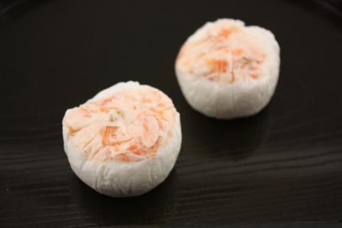 鮭のほぐし身を柔らかい身でつつんで仕上げた蒸し物です。冷凍のまま蒸し器に入れて解凍を兼ねて蒸して下さい。その後ぎんあんをかけてお召し上がり下さい。